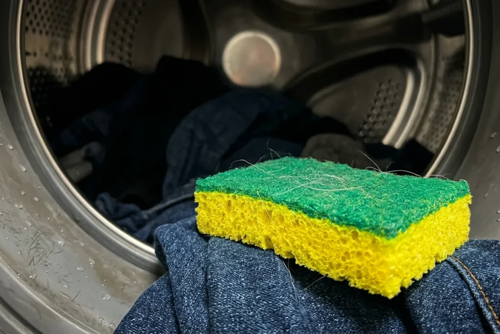 Smetti di combattere con pelucchi e peli che dopo ogni lavaggio rimangono ostinatamente sui tuoi pantaloni neri o sul tuo felpa preferito. Prendi una nuova spugna per piatti dall’armadietto sotto il lavello e semplicemente mettila nel cestello prima del prossimo ciclo. È il modo più economico per evitare guasti alla pompa e filtri intasati, che nelle nostre condizioni – con acqua dura e polvere onnipresente – possono smettere di funzionare nel momento meno opportuno.
