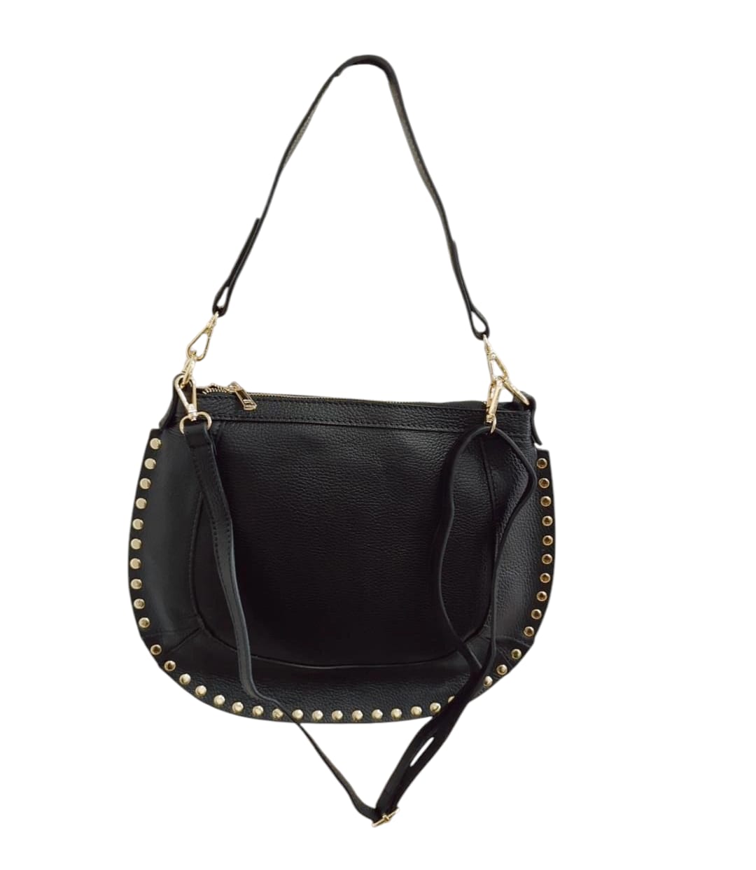 Il design grintoso è accentuato da un giro di borchie, che conferisce carattere e personalità. Questa borsa è perfetta per ogni occasione, che tu stia indossando i nostri anfibi o i mocassini.