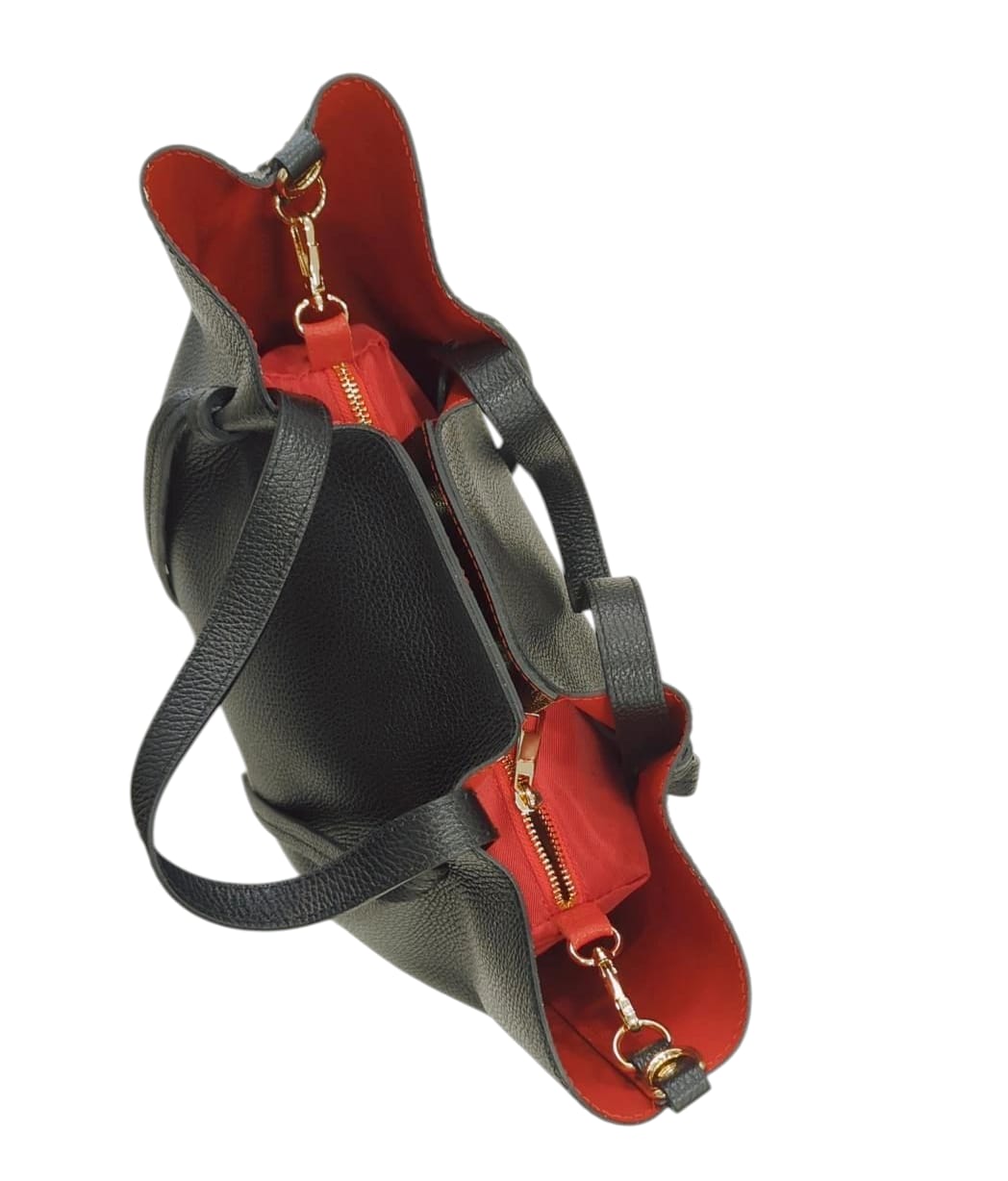 Ma non è tutto: aprendo la borsa, verrai avvolta da un caldo e vivace colore rosso fuoco, perfetto per aggiungere un pizzico di audacia al tuo stile quotidiano.
