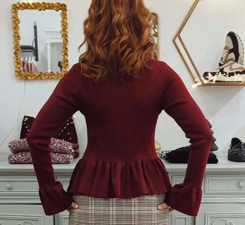 Scopri il nostro maglioncino romantico in un intenso color borgogna, perfetto per chi ama distinguersi con stile!